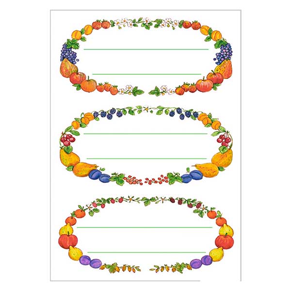 Muotoilu tekee todella mieli tehdä kotitekoisia lahjoja keittiöstä! HERMAn klassisesti muotoillut "Fruit wreaths" -keittiötarrat sopivat erinomaisesti kotitekoisten herkkujen koristeluun tai tavallisten purkkien ja tölkkien koristeluun ja koristeluun. Itseliimautuvat etiketit on helppo merkitä käsin millä tahansa kynällä tai tussilla. Tämä takaa henkilökohtaiset ja erityiset merkinnät, jotka takaavat myös enemmän järjestystä ja organisointia keittiön kaapissa. Visuaalisen laadun lisäksi keittiötarrat tekevät vaikutuksen HERMAn korkealla materiaalilaadulla. Tarrat ovat pysyvästi liimautuvia ja tarttuvat luotettavasti sileisiin pintoihin, kuten lasiin, muoviin tai metalliin. Jokaisessa pakkauksessa on yhteensä 12 tarraa kolmessa eri kuviossa neljällä arkilla.