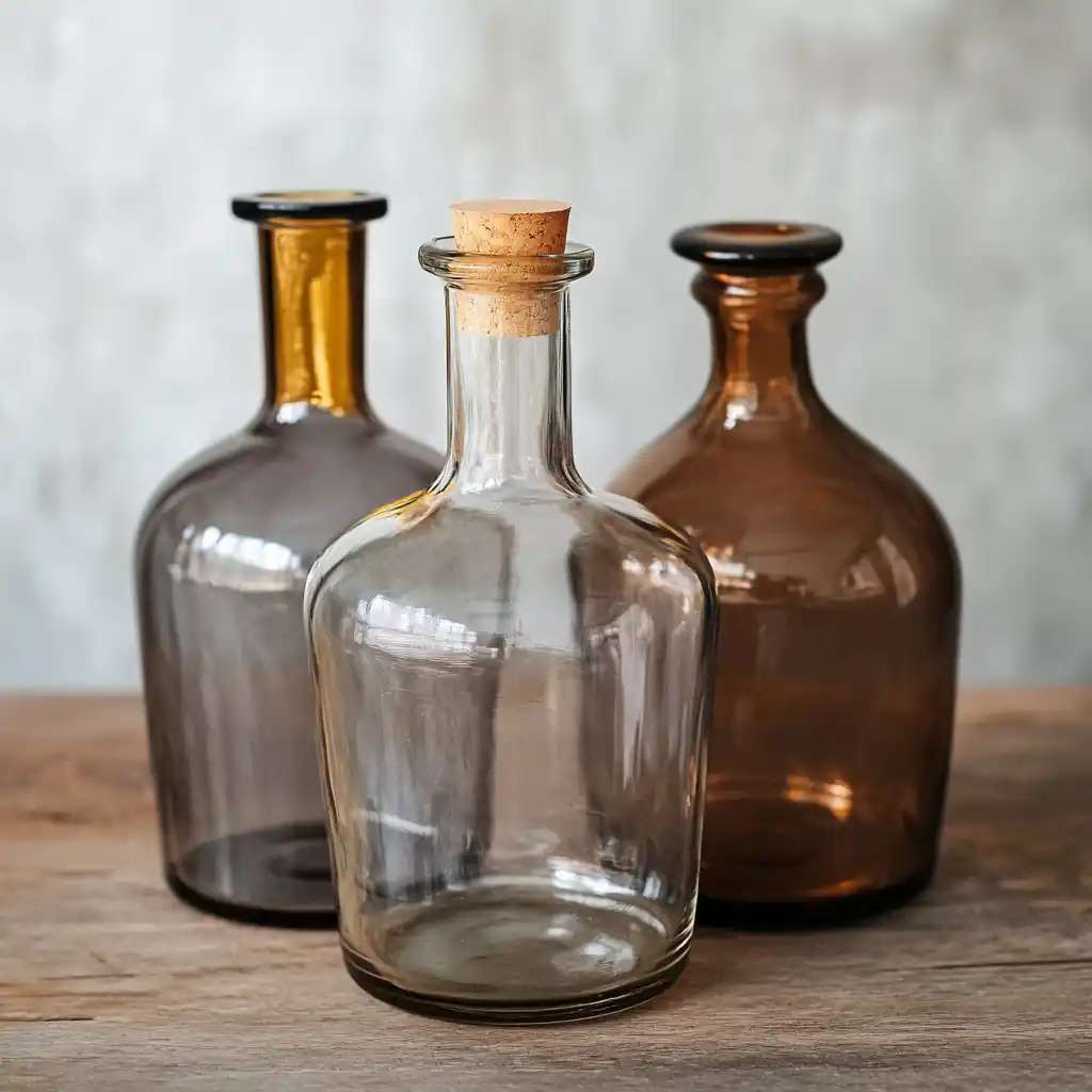 Varastopullot / byretipullot ruskeasta lasista ja kirkkaasta lasista