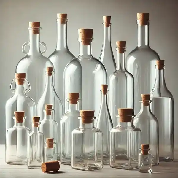 Kauniit korkkipullot sileällä aukolla (ei kierteitä). Tyylikkäät ja elegantit pullot voidaan tilata korkkikorkilla tai ilman. Valinnaisesti saatavana myös muilla sulkimilla (esim. lasitulpat).