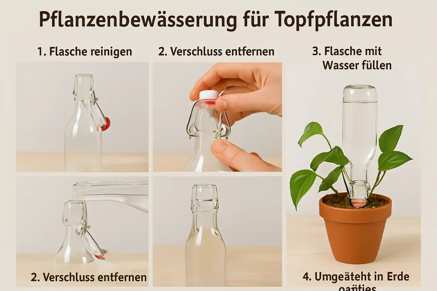 DIY Pflanzenbewässerung mit Drahtbügel-Flasche