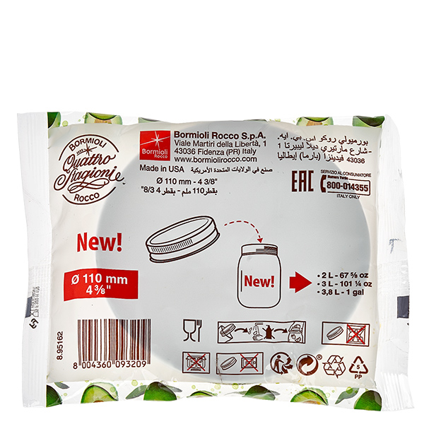 - Lämmön- ja kylmänkestävyys: Metallinen kansi kestää lämpöä n. 100 °C:een asti. Kaikki Quattro Stagioni -kannet voidaan pakastaa -40° Celsiusasteeseen asti.